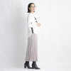 約4cm幅のモノトーンラインがきりっとハンサムな印象を与えるだけでなく、ボディーをスラッと細く見せる効果も。