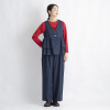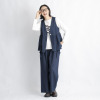 カラーを選びきれずグレーとインディゴ二点をパンツ&ベストで購入。どちらか返品になるかと思いきやどちらも良き。コーディネートの幅がグーンとアップ、上下別々でも色々に楽しめます。典型的な洋梨体型でデカ尻が難なのですがこのパンツは横から見るとヒップがペシャンコ...余りに細見えしてびっくりしました。ベストも隠したいところをしっかり隠せてスタイルアップして見え、オシャレ上級者になった気分