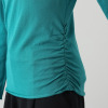 脇にほどこされたシャーリングが、気になるお腹周りをさりげなくカバーしてくれるのもうれしいポイントです。