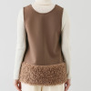 着心地の良いカットソー素材と、トレンド感あふれるエコファー(ポリエステル素材)を組み合わせたベスト。