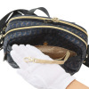 ショルダーストラップは、金糸でブランドロゴを刺しゅうしたエレガントなデザイン。