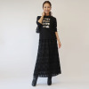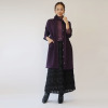 カットジャガード素材は、立体感のあるフリンジ糸が特徴的で、動くたびに表情を変える華やかな一枚に仕上がりました。