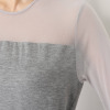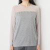 胸元と袖は、ナイロンチュール素材を用いたシアー感のある仕上がり。
