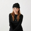 片側をゴムで結んで裏返すことで、ニット帽としても使える2ウェイ仕様。