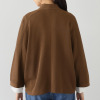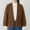 ネックラインから前立てにかけて、編みで折り山を付けることで、さっと羽織るだけで襟端のラインがすっきりと決まり、きちんとした印象を与えます。