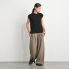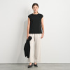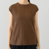 シャリシャリ質感で爽やかな着心地。針抜きで表現したリブの縦のラインによりスタイルアップ見えします。