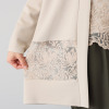 上質なポンチローマ生地に、高級感あふれるオーガンジー刺しゅうレースをアクセント使いした、ジャケット見えするロングカーディガンです。