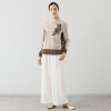 身頃は天竺編みで、配色部分はインターシャ編みで切り替えた、スムースな肌触りの高級感漂う仕立てです。