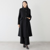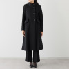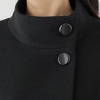 スタンドカラーは、ネックラインから少し離すことで、小顔効果が期待できるつくりに。