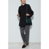 長めに配したファスナーは、先端をスナップボタンで本体に留めることができるため、邪魔になりにくいつくりです。