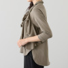 立体的なフリルが奏でる大人の秋の装い。綿混ベア天竺素材の心地良さとシフォンの軽やかさが共鳴する一着。