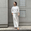 デニムやチノパンなど、カジュアルでシンプルなボトムスと合わせても、大人エレガントなミックススタイルが簡単に完成します。