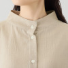 艶のある貝調ボタンが控えめな光沢を放ち、お顔周りを華やかに彩ります。