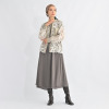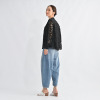 タック入りのポケットが立体感を演出し、裾部分のスカラップはすべて手作業で仕上げられ、動きのある繊細な表情に。