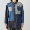ハッシュパピー 4種類の生地を使用した クレイジー切替 デニムシャツ