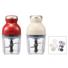 使い方は3ステップで簡単! 食材をカップに入れて、カバーと本体をセットし、ボタンをプッシュするだけ。