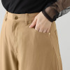 落ち感のある上品な素材感と、ポケットやリベット風ボタンデザインなどのカジュアルなディテールとのミックス感が、こなれた印象を醸し出します。