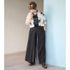 しなやかなツイル生地が生み出す上品なドレープ感。スカート風のシルエットで立ち姿も座り姿も美しく演出。