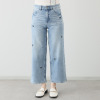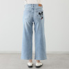さりげなくちりばめられたミッキーの刺しゅうと、ブランドの小さなロゴ金具がアクセントになった大人かわいいデニムパンツです。