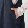 デニムのジャンパースカートは大好きで長年着ていましたが、最近肩が凝ります。これもデザインが前ファスナーだし、背中の接ぎがしっかりあるので肩に負担が少ないかも、と購入しましたがやはり重さを感じてしまい残念ながら諦めました。もう少し薄手だったり、フレアー部分が分量少な目だったら良かったかもしれませんが、季節的にはこれですものね。。。