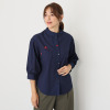スタンドカラーが首元をすっきりと見せながらも、女性らしい上品な印象。
