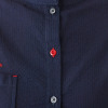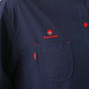 赤色のステッチやボタンなどのディテールが、シンプルな中にも遊び心を感じさせます。