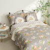 バラやコンボルブルス、ストロベリーなどが描かれた上品な柄が、寝室空間に華やかさをもたらします。