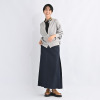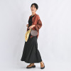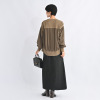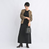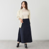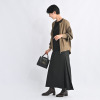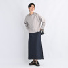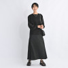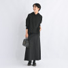サイドには三角のマチ切り替えをほどこし、ハリ感を軽減させつつフレアーパターンによって絶妙なシルエットを形成。