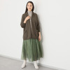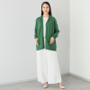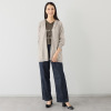 また、着流しタイプのコーディガンですが、ベルトやニットピンなどでラップコートのようにご自身でアレンジいただけるように、前身頃は左右で重なり分を多く取っています。