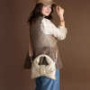 長さ調整かつ取り外し可能なストラップは、肩掛けや斜め掛けなど、その日の装いやシーンに合わせて持ち方の変化が楽しめます。