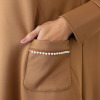 ポケットにあしらわれた小さなパールビジュウが、控えめながらも上品な華やかさを添えます。