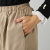 艶やかサテンで大人カジュアルを格上げ。センタープレス入りでお腹周りもすっきり見せる洗練された一本。