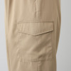 脇のフラップ付きポケットや裾のドローストリングなど、カーゴパンツならではのカジュアル要素も残しつつ、洗練された雰囲気に昇華させました。