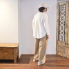 見た目の品格を保ちながら、ウエスト後部をゴム仕様にし、ゆとりのあるサイズ感で日常的に着用できるように考慮。