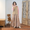 後ろヨーク下の切り替えは直線ではなく、程良いカーブと立体パターンで微妙なコクーンシルエットを形成し、バックスタイルに立体感と抜け感を演出します。
