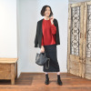後ろ切り替え下のタックにより動きが生まれ、一枚で着てもサマになります。