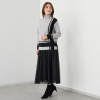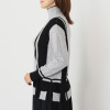 配色のリブニットを重ねた2枚仕立てハイネックは、内側の中心部分に切れ込みを入れており、折り返すことで、配色のプチ襟がついたデザインのようにも着こなすことができます。