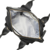 トロンプルイユ(だまし絵)の手法を取り入れ、バックルのモティーフを牛床革のパーツで表現。