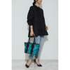 目が細かく光沢感のあるナイロン素材と、艶のあるスプリットレザー(牛床革)を組み合わせた個性的なトートバッグです。
