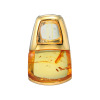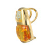 台形の金具は裏を抜くことで、琥珀(アンバー)の持つ透明感と輝きを生かしたデザイン。
