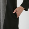 ほんの少し段差をつけた切り替え位置の裾で動きをプラスしたアシンメトリーなデザインと、配色使いで都会的なモード感を実現。