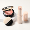 ハイライターとして使えるスティック状美容液と、2色のローズ系カラーをセットインしたチークパレット。