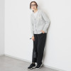 綿とポリエステル、リサイクルウールで構成された、大津毛織社製の“エコウール”を用いて、ミドルゲージのジャガード機で編み立てました。