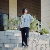 ドロップショルダーで身幅も十分に取った余裕のあるシルエットながら、肩線や袖山のパターンを工夫し女性らしさも両立。
