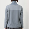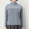 タートルネック部分には特別に染色したチュールメッシュ素材を用い、前後ヨーク部分と、肩から袖にかけてをラメ入り素材で切り替えた、異素材ミックスデザイン。
