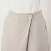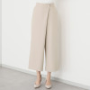 ワイドシルエットが脚のラインをカバーしつつ、タイトスカートのようにも見えることで、女性らしさを引き立てます。