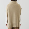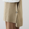 ミドルゲージ(7ゲージ)のリブ編みとフラットな天竺編みを前後で組み合わせた、どちら側も着用できる2ウェイデザインで、気分によって編地や着丈の変化を楽しめます。
