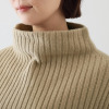 チクチクと感じにくい暖かなラムウールをベースにナイロンを混紡した見た目よりも軽やかな編地を使用。
