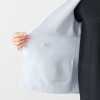“FULECO(フレコ)”という、ポリエステル100%の日本製素材を使用。ストレッチ性(伸縮性)に優れ、肌触りが柔らかく、軽量でシワになりにくく、イージーケアな点が特徴です。(株)島精機社のホールガーメント(R)編み機を用い、可能な限り縫製を省いて立体感のあるパール編みに編み立てました。縫い目の縫い代によるゴロつきを感じにくく、身体に程良くフィットする抜群の着心地が魅力。