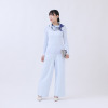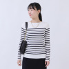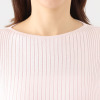 ネックラインや脇などに接ぎ目や縫い代がないので、縫製によるツッパリを感じにくく、伸縮性により心地良く身体にフィット。襟ぐりはジャケットなどと合わせやすいボートネックを採用しました。横に開きすぎず、デコルテを美しく見せる開き具合に設計しています。